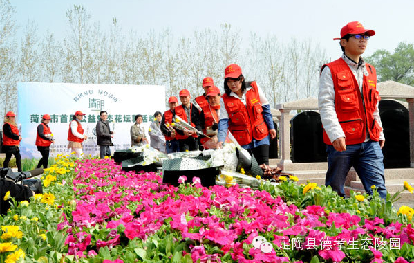 参加本次活动的领导有:菏泽市文明办专职副主任张怀庆、菏泽市总工会宣教部部长周剑、菏泽市民政局副局长刘学成、定陶县民政局副局长赵广宇、德孝生态陵园董事长朱亚忠等。4月3日,清明节前夕,菏泽市在定陶德孝生态陵园为已故“三无”老人举办了文明、节俭、庄重的免费生态花葬活动。